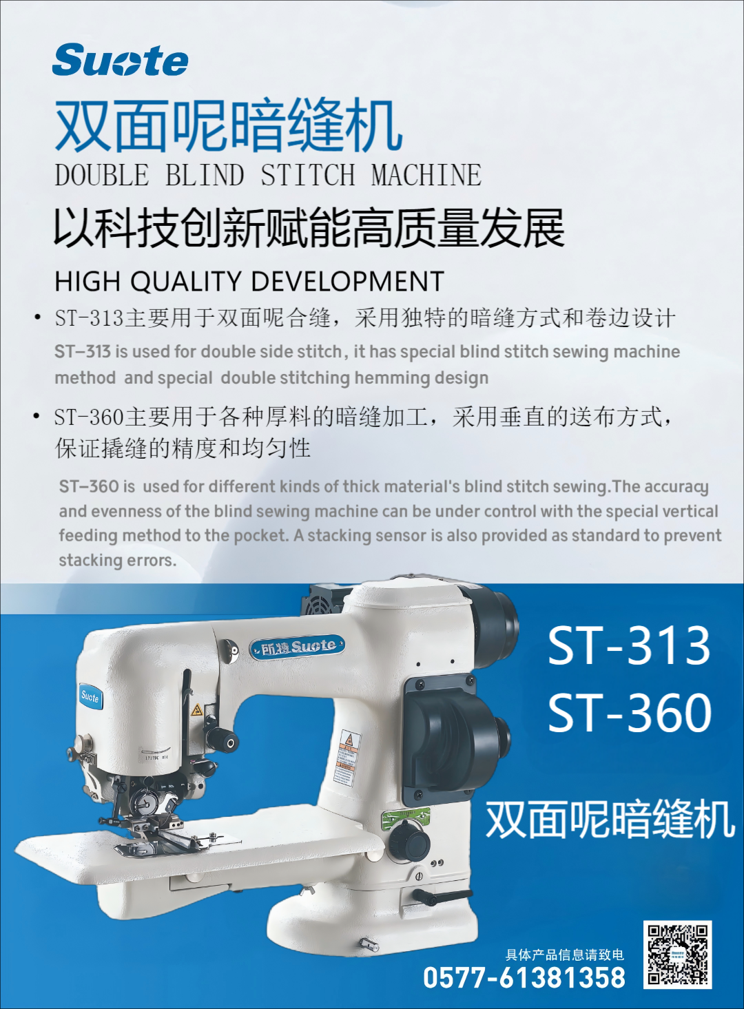 公司國內首創360自動旋轉升降智能模板機,與多家高檔沙發,汽車座椅等企業合作,為客戶解決困擾多年的生產問題。并研發生產的代替手工縫制雙面呢暗縫機等多種產品。